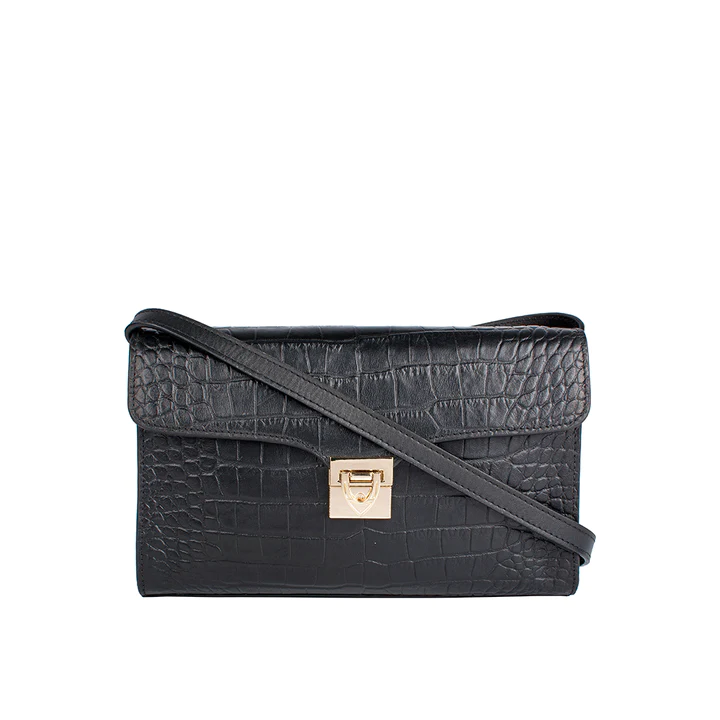 優雅鱷魚壓紋信封包-黑