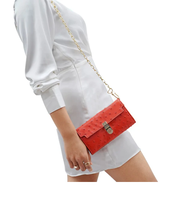 巴托利鴕鳥皮鍊墜長夾_火焰紅